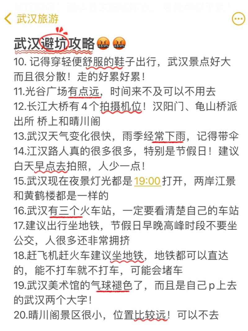 不愧是做攻略的,我一个武汉人节假日最多家附近转转👏全是人!下次再来可以问问武汉人